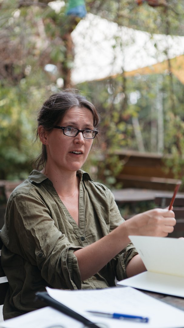 Uli fährt mit dem Rad zur Arbeit. Gerade im Frühsommer, wenn es grün ist, genießt sie den Weg zu ihrem KRACH-Raum. Es braucht nicht viele Einrichtungsgegenstände, um kreativ zu sein.