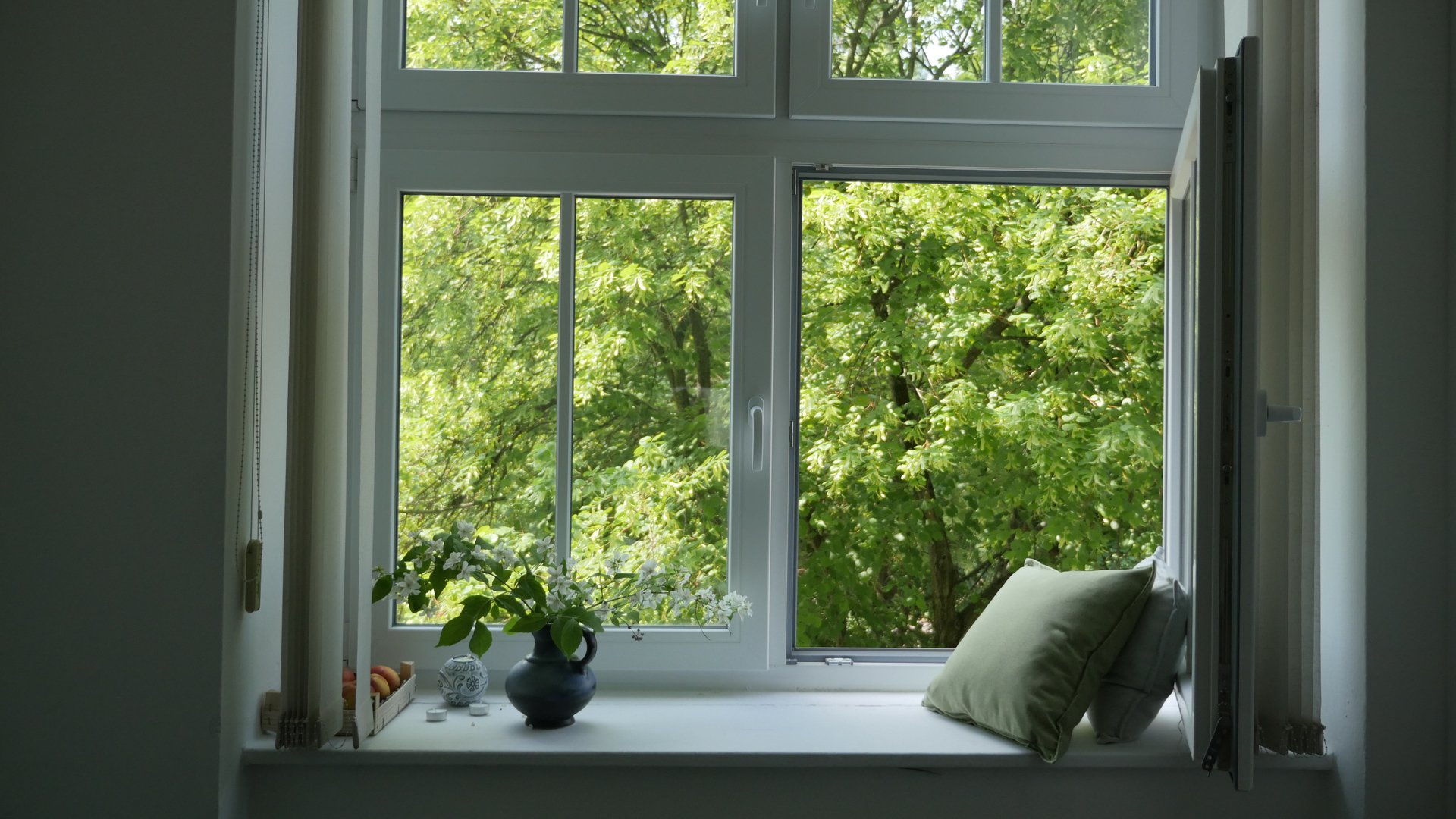 Zur Inspiration verlagert Uli gerne ihren Arbeitsplatz vom Schreibtisch auf die Fensterbank und lässt ihren Blick aus dem Fenster schweifen – ihr eigentlicher Lieblingsplatz im Raum. Eigentlich ist Ulrikes Ensemble schon komplett. Schön wäre nur noch eine Couch, auf der man sich auch mal zur Ruhe legen kann.